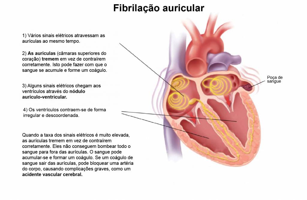 A fibrilhação auricular é um distúrbio do ritmo cardíaco proveniente das aurículas que causa um ritmo cardíaco irregular e rápido. Devido à ativação irregular e rápida das aurículas, a contração diminui causando o abrandamento ou mesmo a estagnação do fluxo sanguíneo.